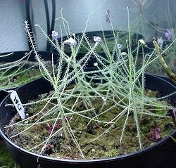 Byblis liniflora wordt 15 - 35 cm groot. In de zomer sterft de plant helemaal af. Na de droge periode komt de plant weer op uit zaad.